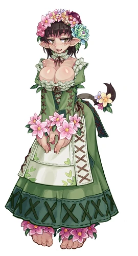 They have a custom of decorating their bodies with beautiful flowers. It's because of an inferiority complex they harbor. Their hands and feet are large and crude compared to those of humans, and they want to hide them to look at least a little bit better to men. Also, they have extremely strong body odor, so another one of the reasons is to cancel it out with the fragrance of flowers. However, the body odor is definitely not something unpleasant, if men nearby smell it, the powerful 'female' odor makes them dizzy. That alone is enough to cause an erection.
